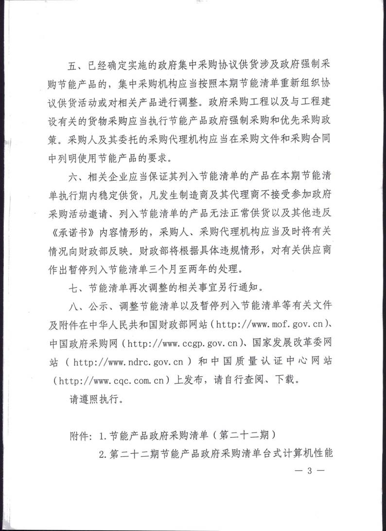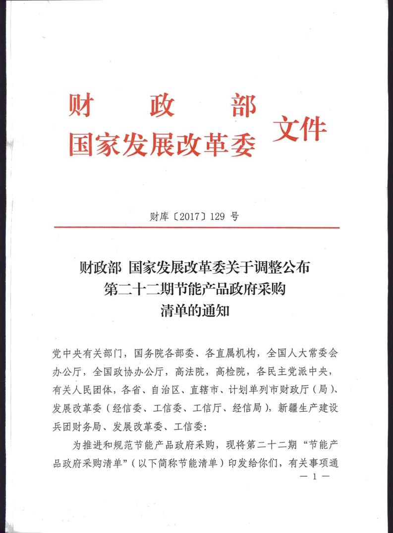 财政部 国家发展改革委关于调整公布第二十二期节能产品政府采购清单的通知