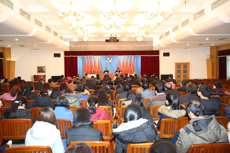 1月9日,市财政局召开2017年度机关党委书记抓党建述职评议大会,局党组书记、局长、局机关党委书记杨磊同志做述职报告,局党组成员、副局长、局机关党委副书记高晓战同志主持会议,局机关党委所辖全体党员及群众代表参加了会议。